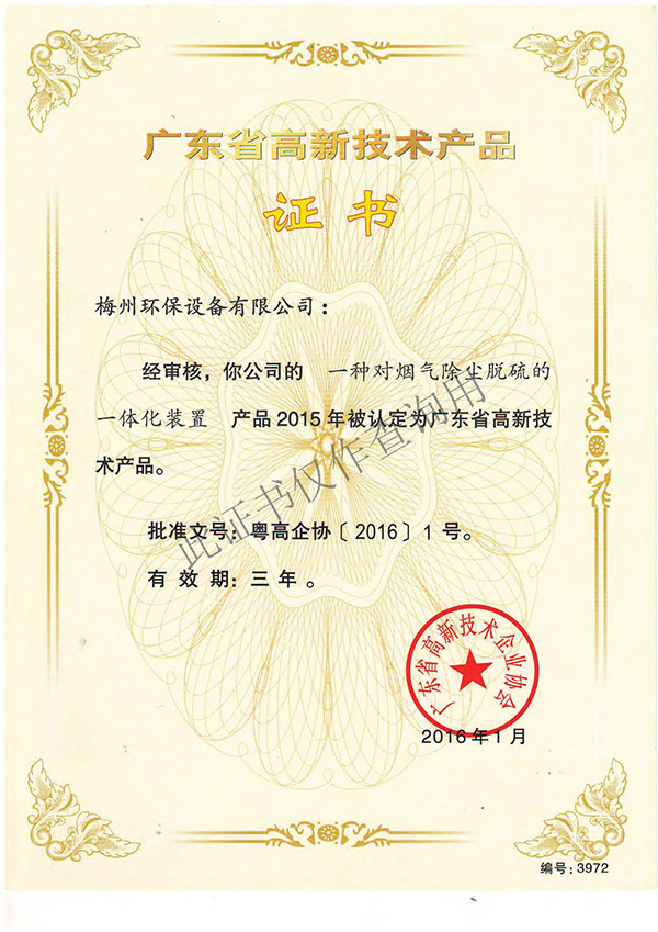 广东省高新技术产品证书